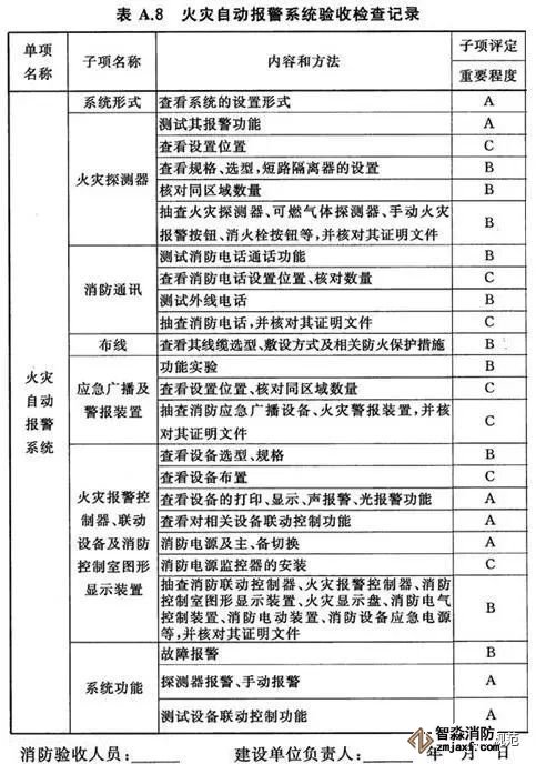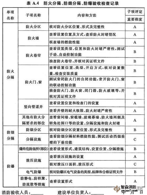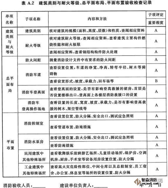 6.2.1子項按其影響消防安全的重要程度分為A(關(guān)鍵項目)、B(主要項目)、C(一般項目)三類,分類標準如下: