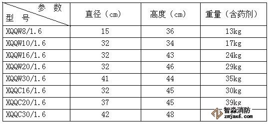 七氟丙烷氣體自動(dòng)滅火系統(tǒng)分為有管網(wǎng)、無(wú)管網(wǎng)(柜式和懸掛)系統(tǒng),它們的儲(chǔ)瓶容器參數(shù)如下: