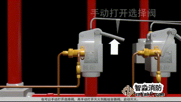 1、 確認發(fā)生火災的防護區(qū),找到防護區(qū)對應的選擇閥,手動打開選擇閥;