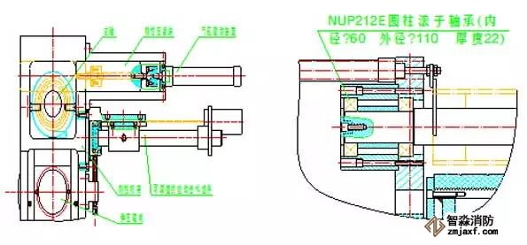 本方案中,突出的關(guān)鍵技術(shù)一是剛性芯軸通過兩個NUP21E軸承的巧妙布置后的懸置固定,徹底解決了剛性芯軸在筒體卷制過程中瞬間偏轉(zhuǎn)而使剛性芯軸提前失效最終導(dǎo)致設(shè)備無法正常卷制的致命技術(shù)問題。