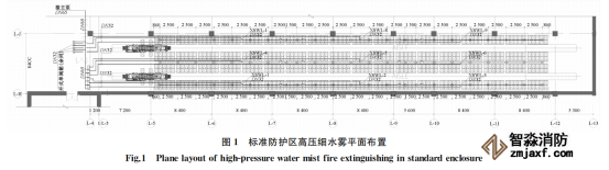 根據(jù)應(yīng)用場所的不同,細(xì)水霧的系統(tǒng)選型也不同。本書庫采用水作為滅火介質(zhì),即采用單流體系統(tǒng)。根據(jù)規(guī)范推薦,高壓系統(tǒng)霧化效果好,抑制與洗刷作用明顯,快速吸熱,對圖書破壞小,因此采用高壓系統(tǒng)。雖然《細(xì)水霧滅火系統(tǒng)技術(shù)規(guī)范》(GB 50898-2013)3.1.3條規(guī)定“密集柜儲存的圖書庫宜選擇全淹沒應(yīng)用方式的開式系統(tǒng)”,但3.4.5條對全淹沒系統(tǒng)每個防護(hù)區(qū)的容積給出了不宜超過3 000 m³的限制,一是因為實體火災(zāi)模擬試驗規(guī)模的限制,二是考慮到防護(hù)區(qū)過大時,采用全淹沒應(yīng)用方式不夠經(jīng)濟。另外查找國外文獻(xiàn)可以看出,Mawhinney開展了細(xì)水霧保護(hù)固定圖書架的試驗,在試驗過程中分別采用了2種細(xì)水霧滅火系統(tǒng)設(shè)計方法:全淹沒系統(tǒng)和局部應(yīng)用系統(tǒng)。結(jié)果表明在全淹沒系統(tǒng)的測試過程中,大部分的水都被浪費在遠(yuǎn)離火源的地方,從而對圖書資料造成損害,而局部應(yīng)用系統(tǒng)可以大大減少耗水量,將水造成的附加危害降到最低。綜上,本書庫采用局部應(yīng)用開式單流體高壓細(xì)水霧是安全可靠的。