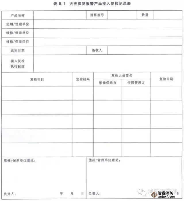 火災探測報警產品接入復檢記錄表的格式見表B.1。